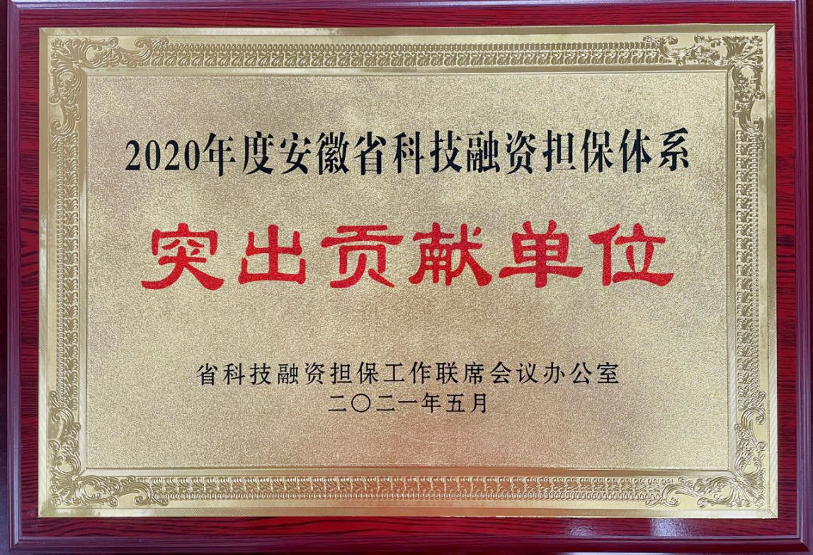 市普惠融資擔(dān)保公司被評為2020年安徽省科技融資擔(dān)保體系突出貢獻(xiàn)單位