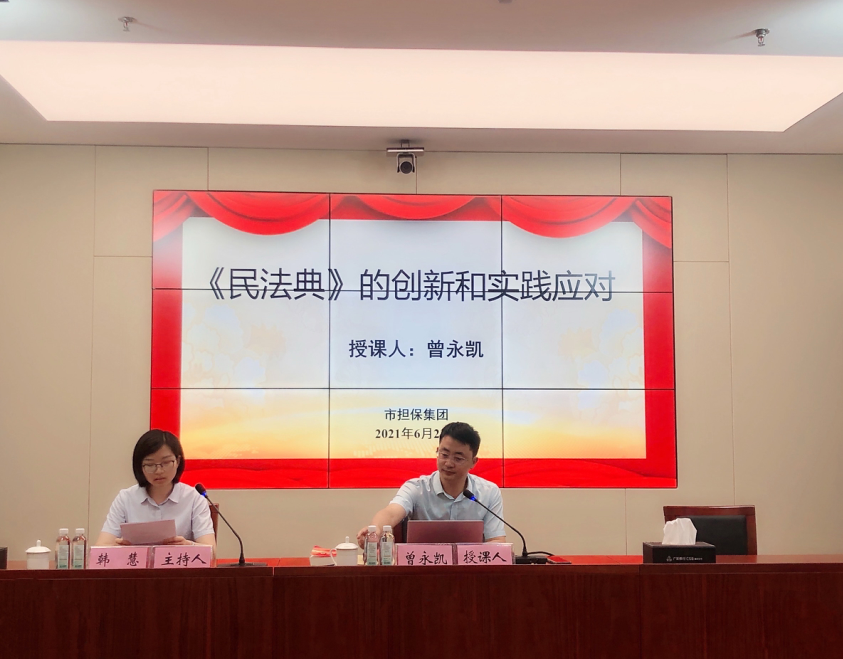 為慶祝建黨100周年,營(yíng)造濃厚法治氛圍,進(jìn)一步提高員工法律素養(yǎng),6月23日下午,市擔(dān)保集團(tuán)邀請(qǐng)到滁州電大法學(xué)副教授、市理論宣講專家?guī)鞂<?、市“青年講師團(tuán)”講師曾永凱,為集團(tuán)全體干部職工帶來(lái)了一場(chǎng)精彩的《民法典》的創(chuàng)新和實(shí)踐應(yīng)對(duì)專題培訓(xùn)會(huì)。