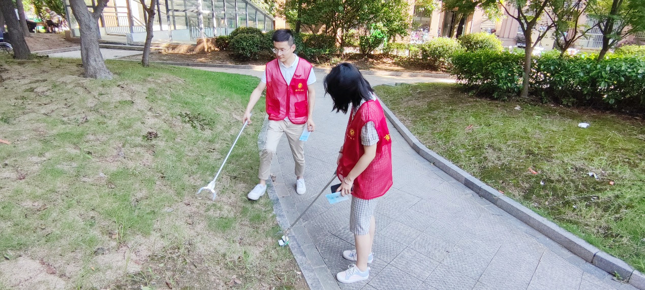 在小區(qū)內(nèi)撿拾垃圾
