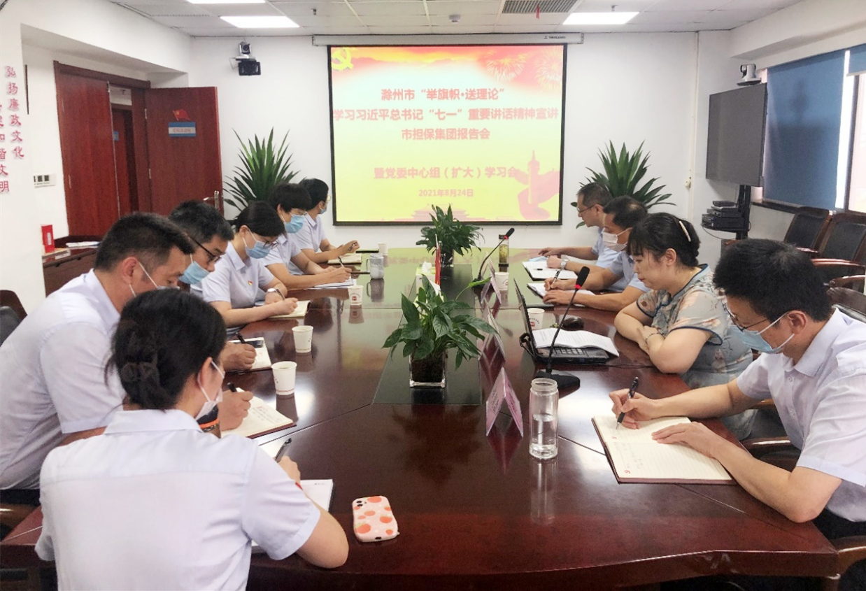 會議要求,一是深刻認識總書記“七一”重要講話的重大歷史意義。學習貫徹總書記“七一”重要講話精神,是當前和今后一個時期的首要政治任務,集團全體黨員干部要切實增強學習貫徹講話精神的政治自覺、思想自覺和行動自覺。二是全面領會總書記“七一”重要講話的豐富內涵和精神實質。深入了解全面建成小康社會的偉大成就和歷史意義,深入領會偉大建黨精神的深刻內涵和時代價值,深入貫徹以史為鑒、開創(chuàng)未來“九個必須”的寶貴經(jīng)驗和根本要求。三是要堅持以習近平總書記“七一”重要講話精神為指導,一體學習領會、整體貫徹落實習近平總書記考察安徽重要講話精神和對國資國企一系列重要論述,全力服務實體經(jīng)濟,全力服務“雙招雙引”,全力服務“亭滿意”營商環(huán)境,奮力開創(chuàng)滁州擔保發(fā)展新局面。
