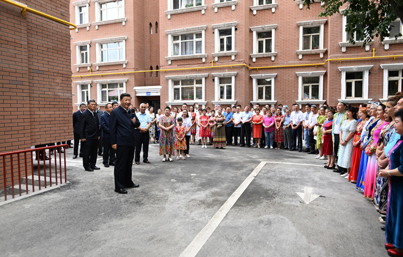 7月12日至15日,習近平在新疆維吾爾自治區(qū)黨委書記馬興瑞、自治區(qū)政府主席艾爾肯·吐尼亞孜陪同下,先后來到烏魯木齊、石河子、吐魯番等地,深入學校、國際陸港區(qū)、社區(qū)、博物館、農(nóng)村和新疆生產(chǎn)建設(shè)兵團等進行調(diào)研。
